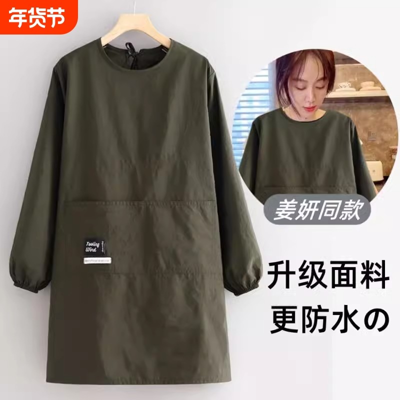 冬季加绒罩衣大人加厚长袖围裙防水韩版女时尚外套家用工作服定制