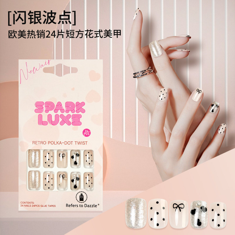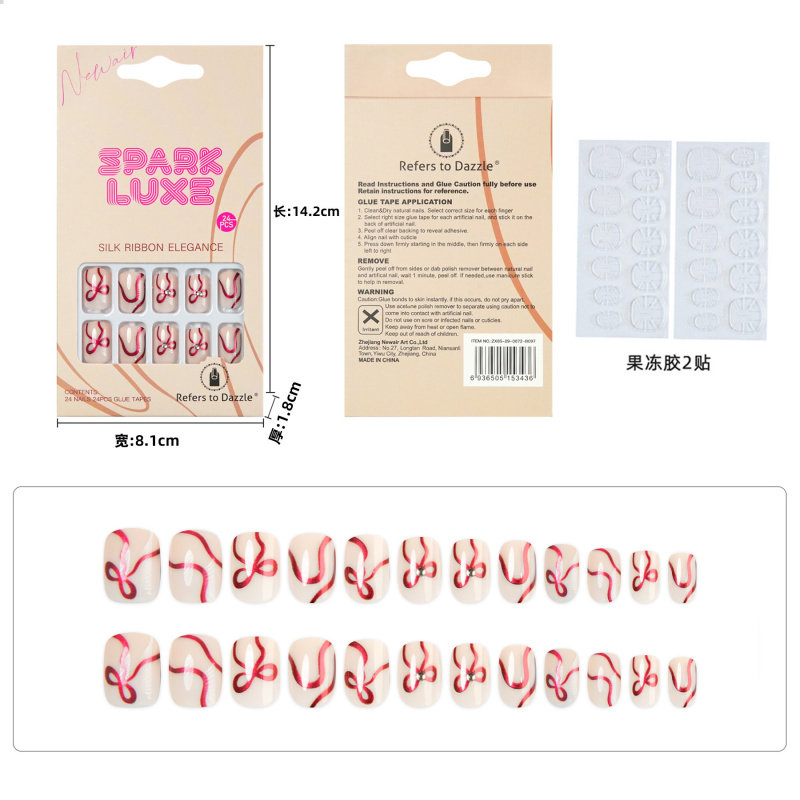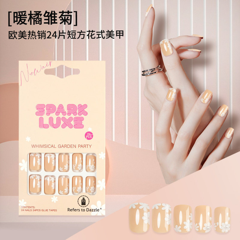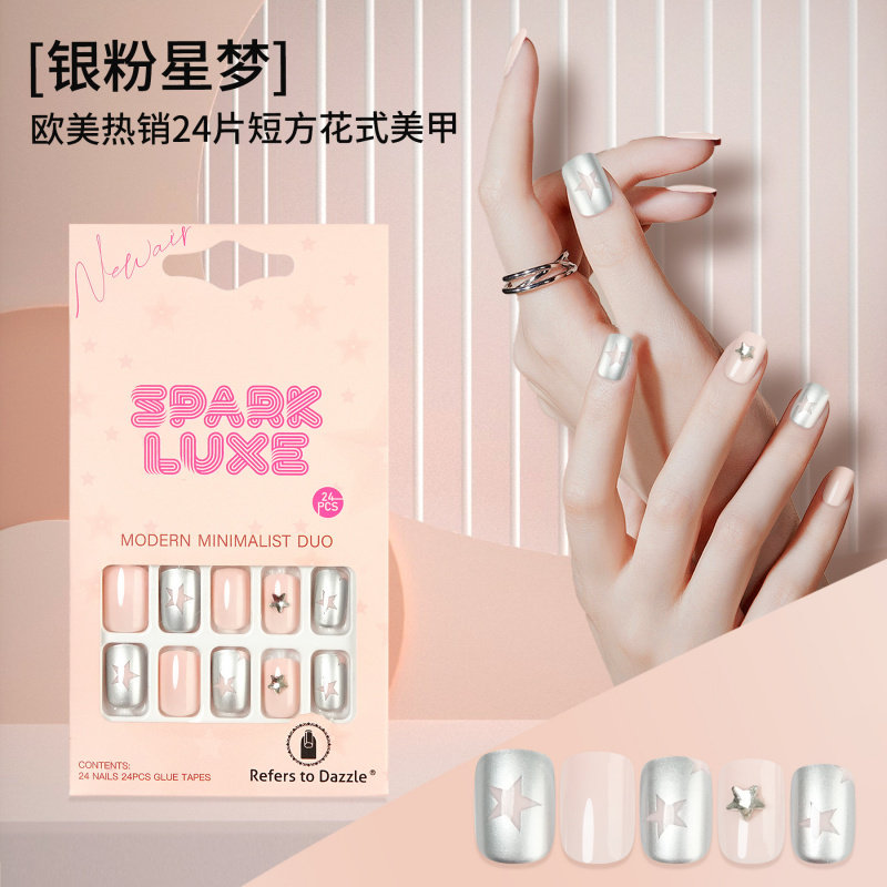 新空气短方穿戴甲甜美花式24片成品套装欧美东南亚全英文包装