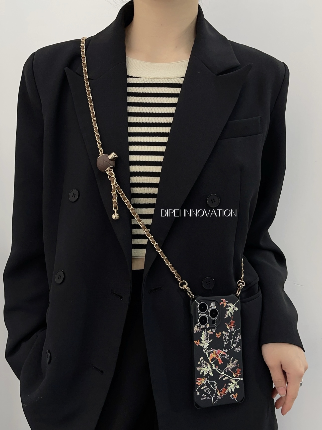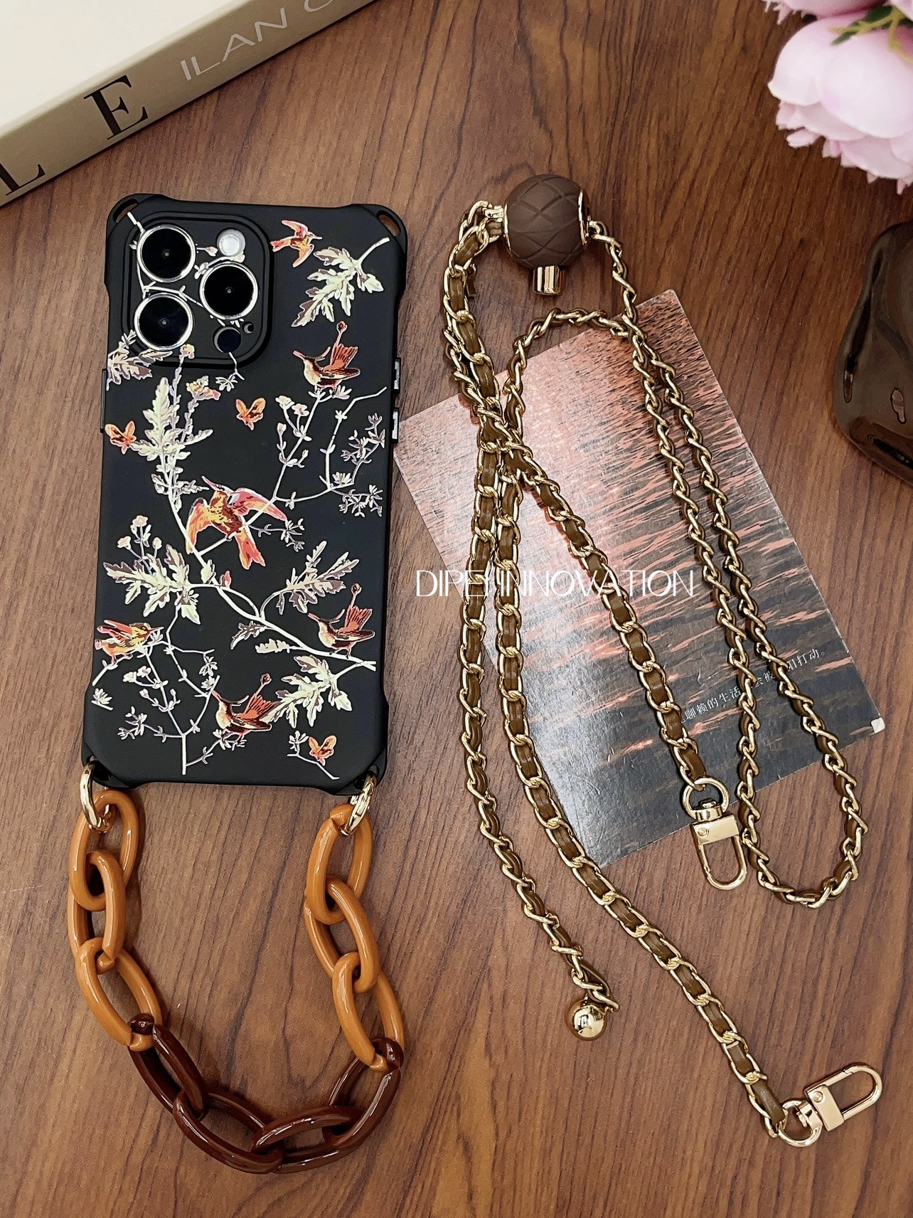 中式复古带链条手机壳15Promax黑色11适用苹果iPhone14全包13防摔12华为mate60挂绳斜挎nova12新款国风小米14