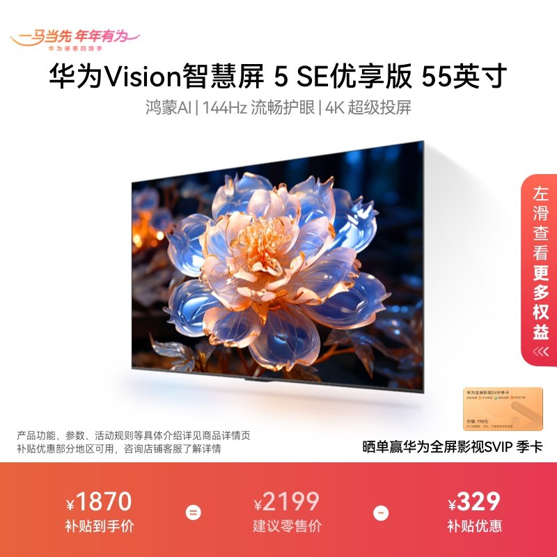 华为Vision智慧屏 5 SE优享版 55英寸鸿蒙AI MateTV同源投屏电视