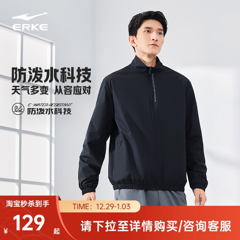 特步防泼水夹克外套男春秋季户外风衣连帽黑色上衣防风运动训练服