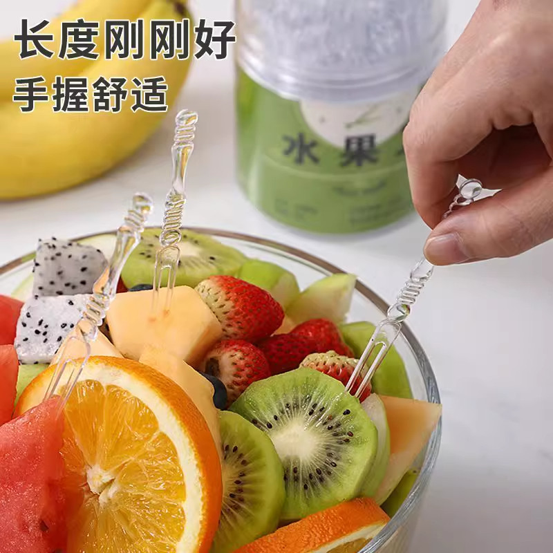 一次性水果叉新款罐装便携收纳透明小叉子家用蛋糕点心签专用