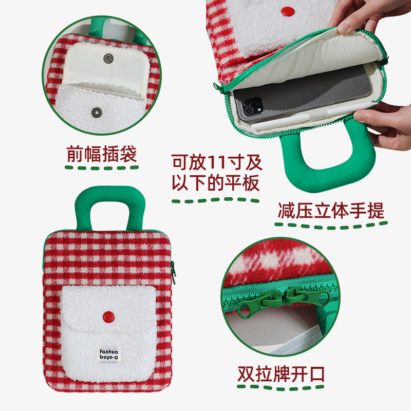 梵花不语新款毛呢格子平板保护收纳包毛呢手提防震11英寸iPad包包