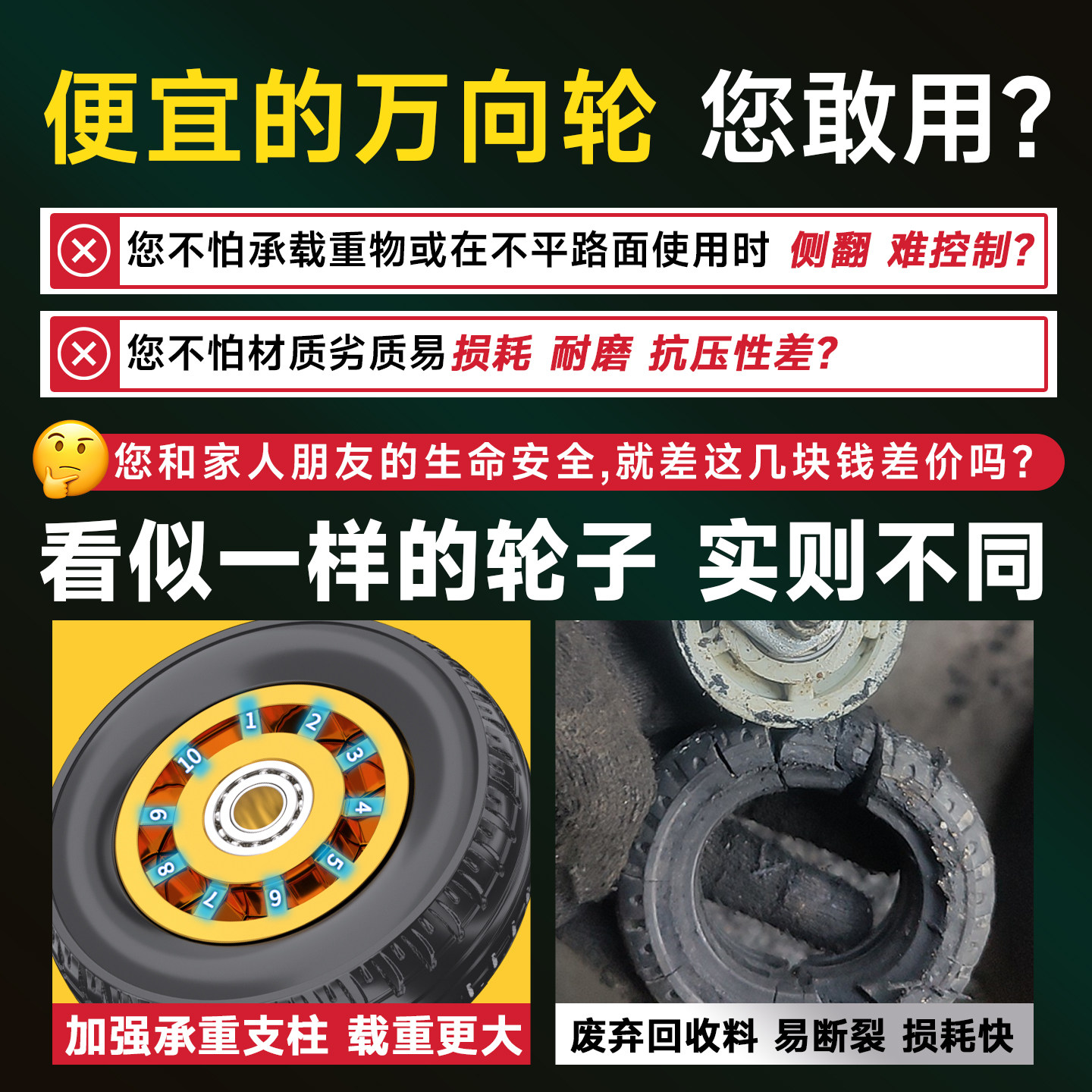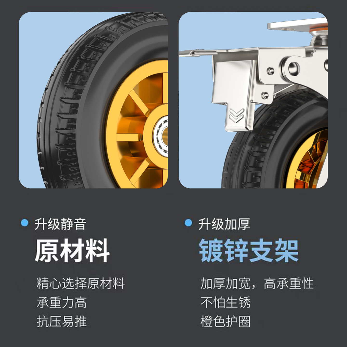 万向轮轮子重型静音橡胶轮6寸小推车轮板车拖车承重脚轮滑轮滚轮