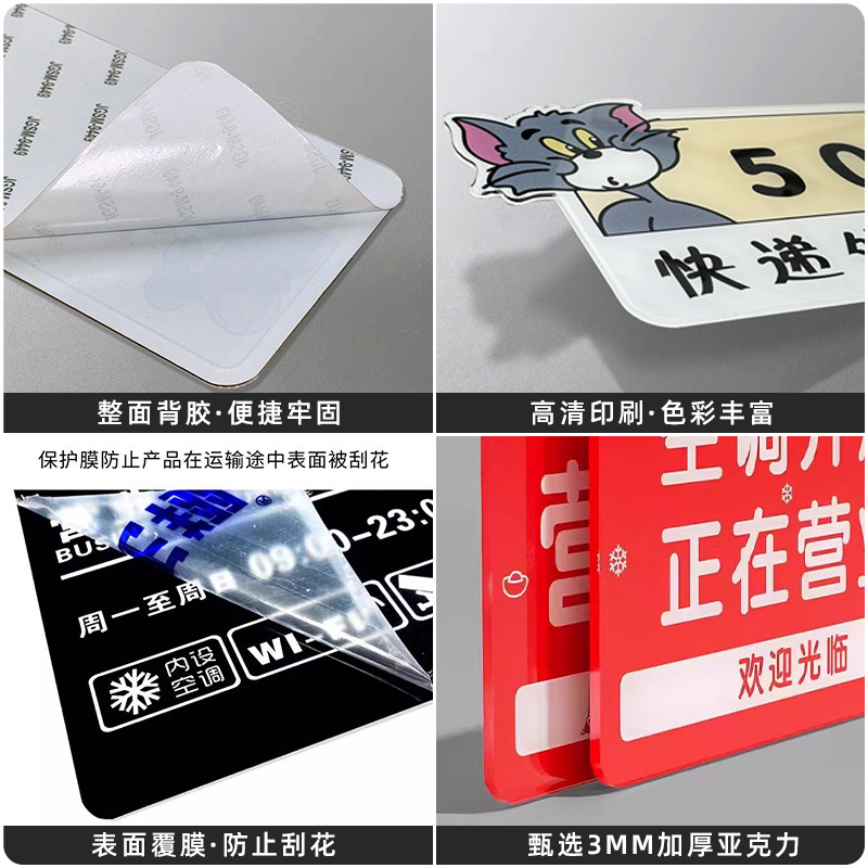 提示牌定制门牌警示牌外卖指示牌亚克力广告牌创意贴纸logo小展示牌卡通可爱文字温馨提醒挂牌上标识牌标语做