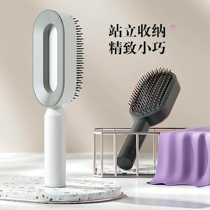 高端伸缩梳子女士专用防静电顺髪不打结头部按摩梳气垫梳一键清理