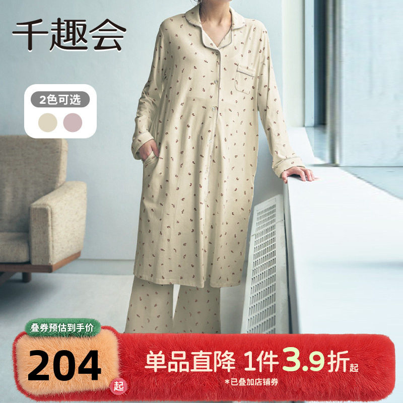 千趣会孕妇装春秋款家居服套装产后方便哺乳上衣裤子孕妈舒适睡衣