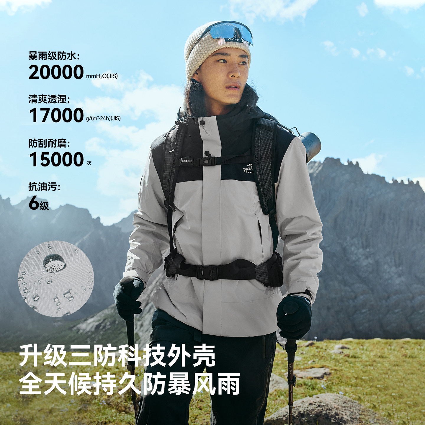 【岩壳】伯希和户外硬壳冲锋衣女新款防风运动外套防水登山服男