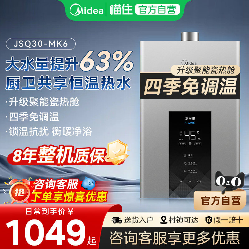 【政府补贴】美的燃气热水器13L16升家用天然气增压水伺服恒温MK6