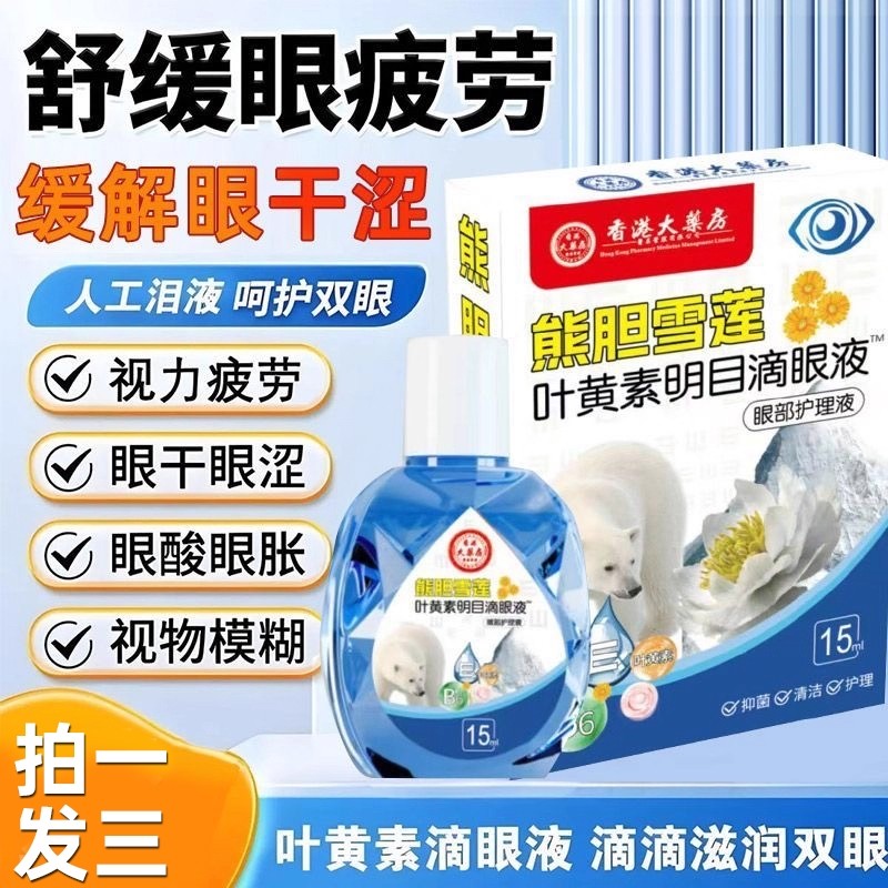 香港大药房熊胆雪莲叶黄素明目滴眼液缓解眼疲劳眼部护理液头部