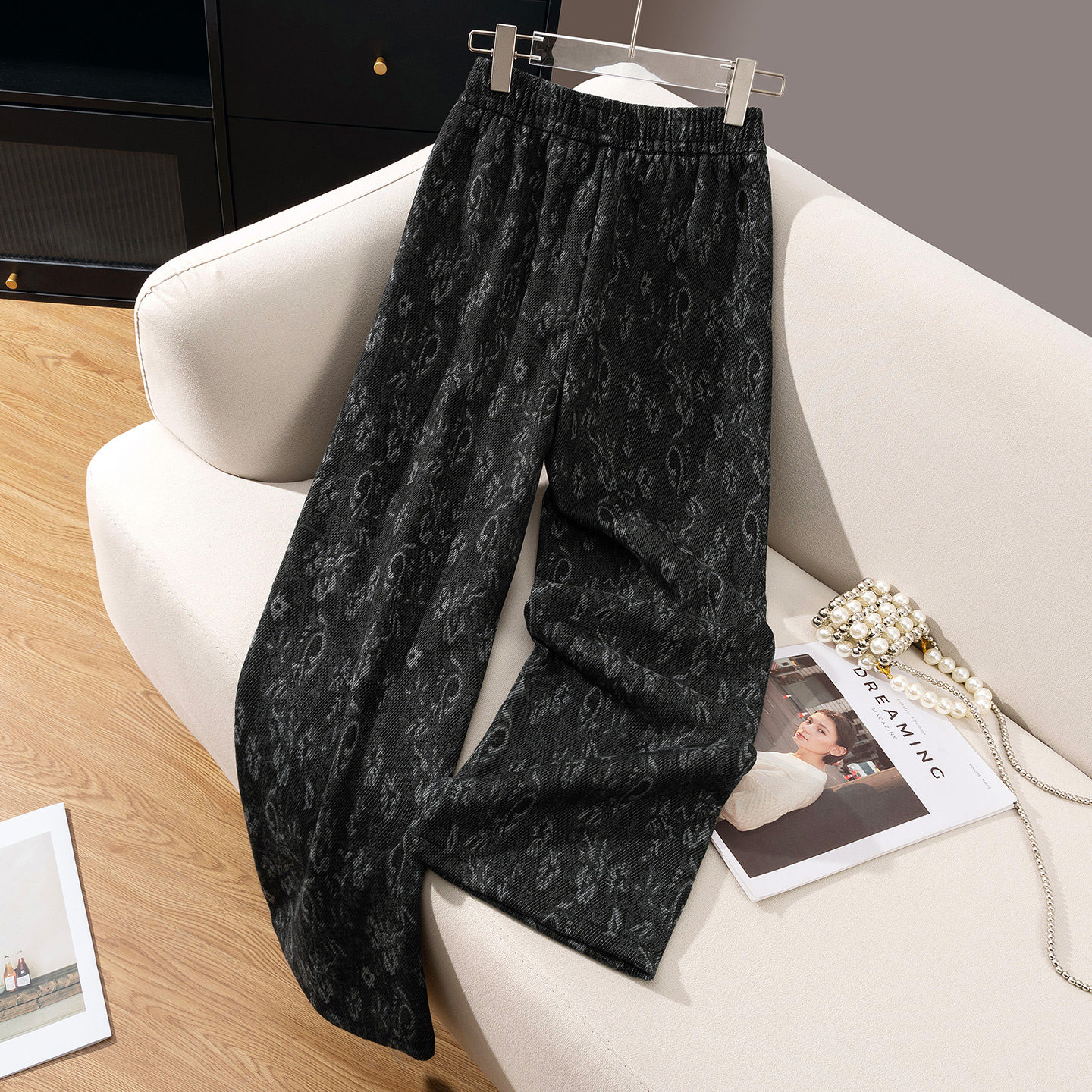 唐狮DESSO秋冬新款糯米裤高腰垂感宽松加绒直筒阔腿裤5