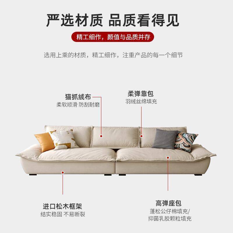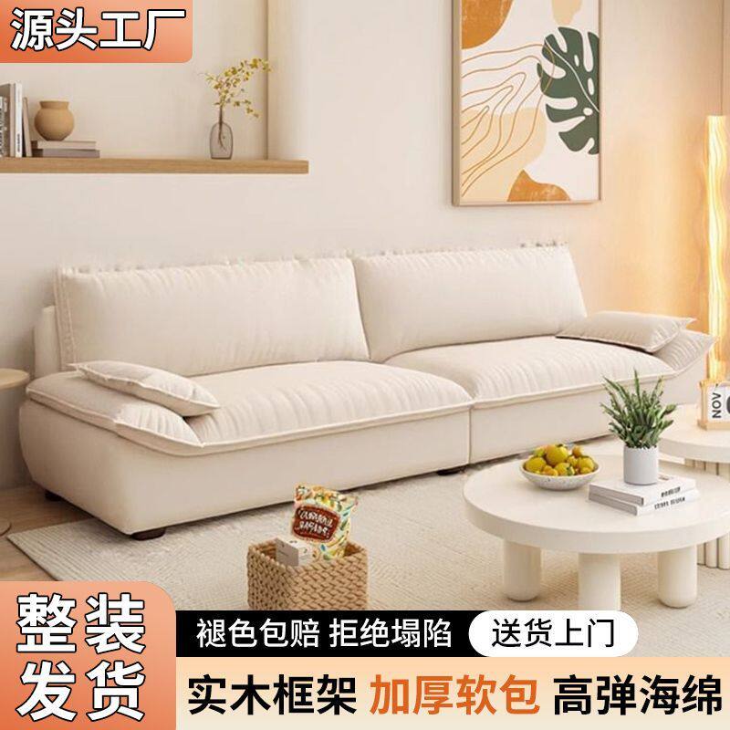奶油风布艺沙发客厅2025新款小户型家用可拆洗三人位直排云朵沙发