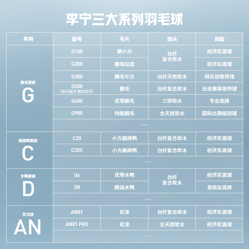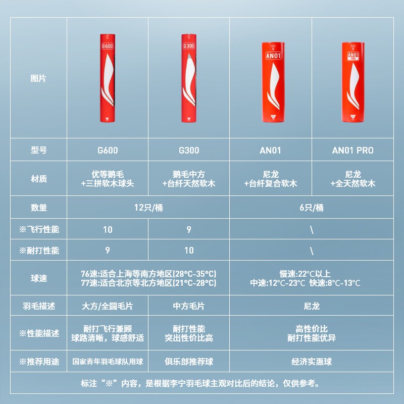 李宁正品羽毛球鹅毛球G300/G600/G900比赛专用室内专业耐打训练球