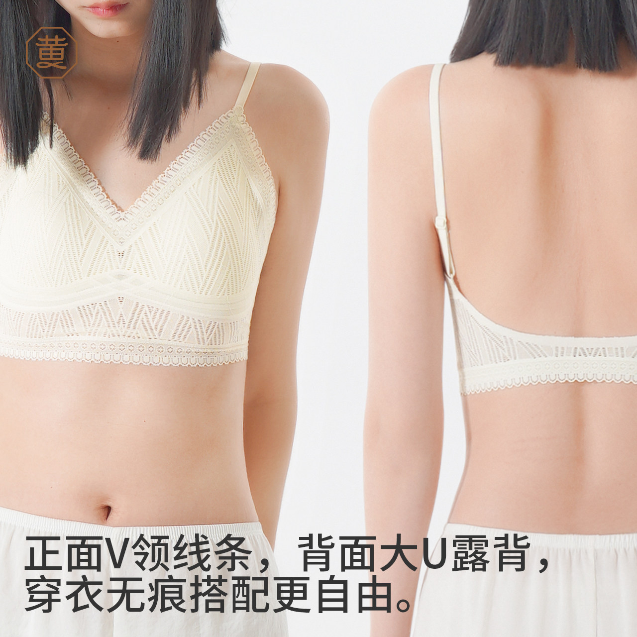 黄小姐蕾丝美背春夏季薄款无痕大胸显小透气不闷防下垂无钢圈文胸