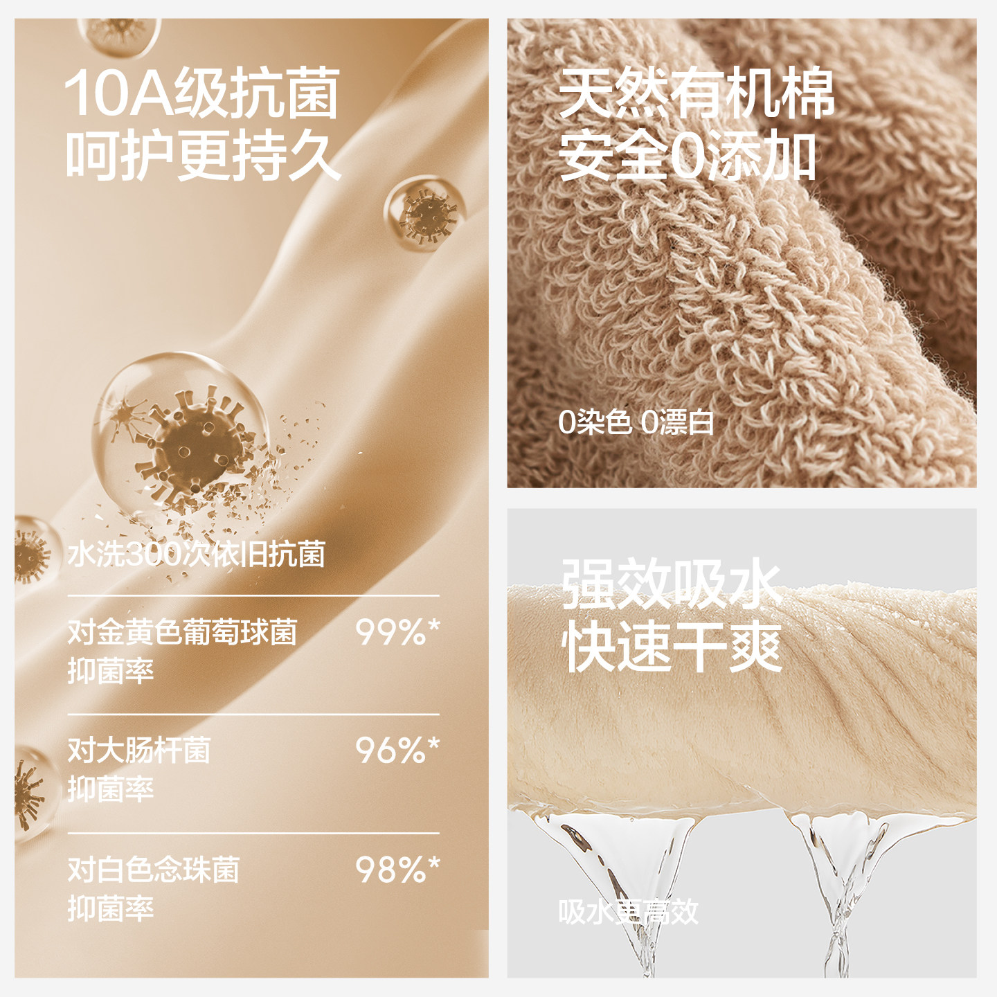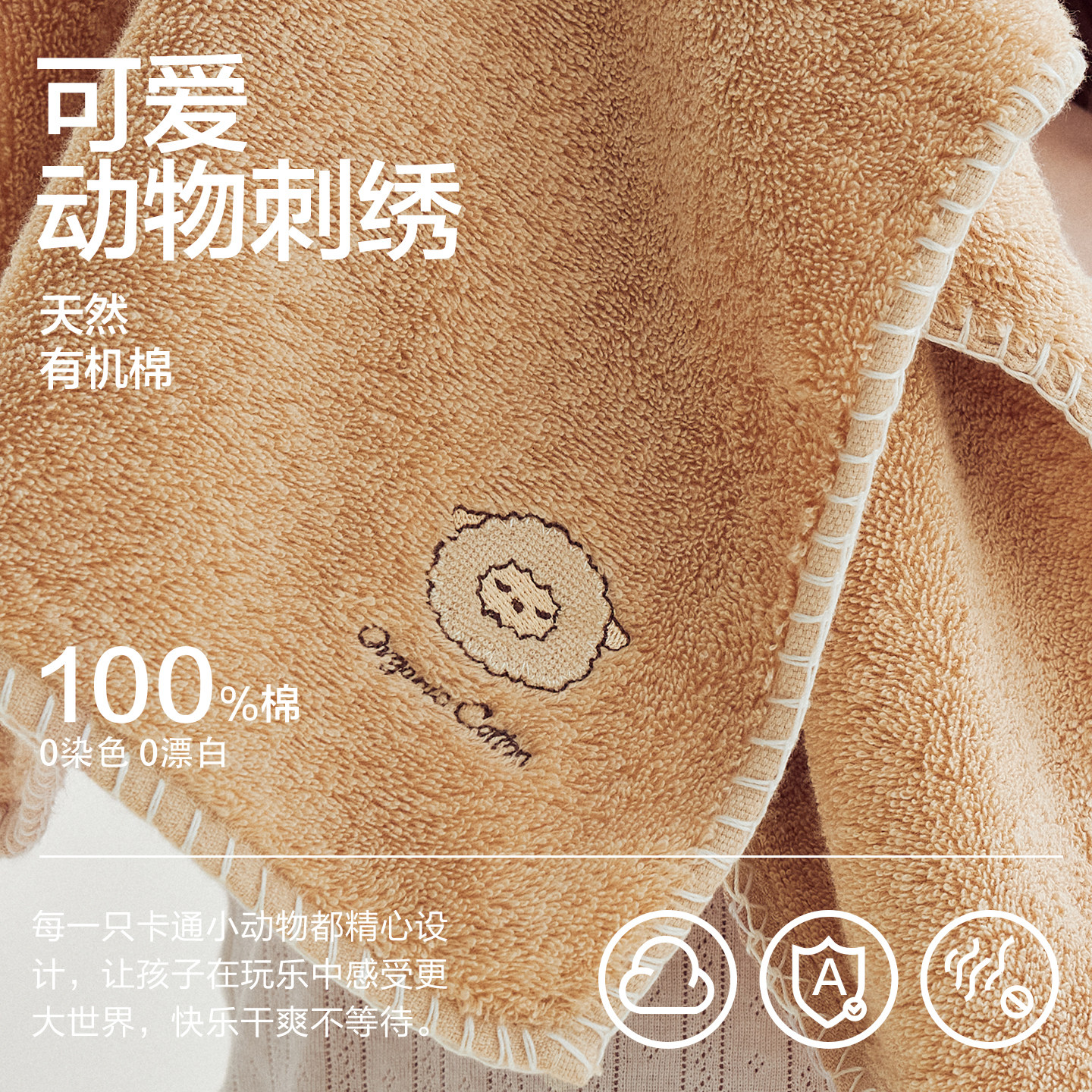 三利10A抗菌有机棉儿童浴巾纯棉婴儿男女宝宝专用全棉洗澡大裹巾