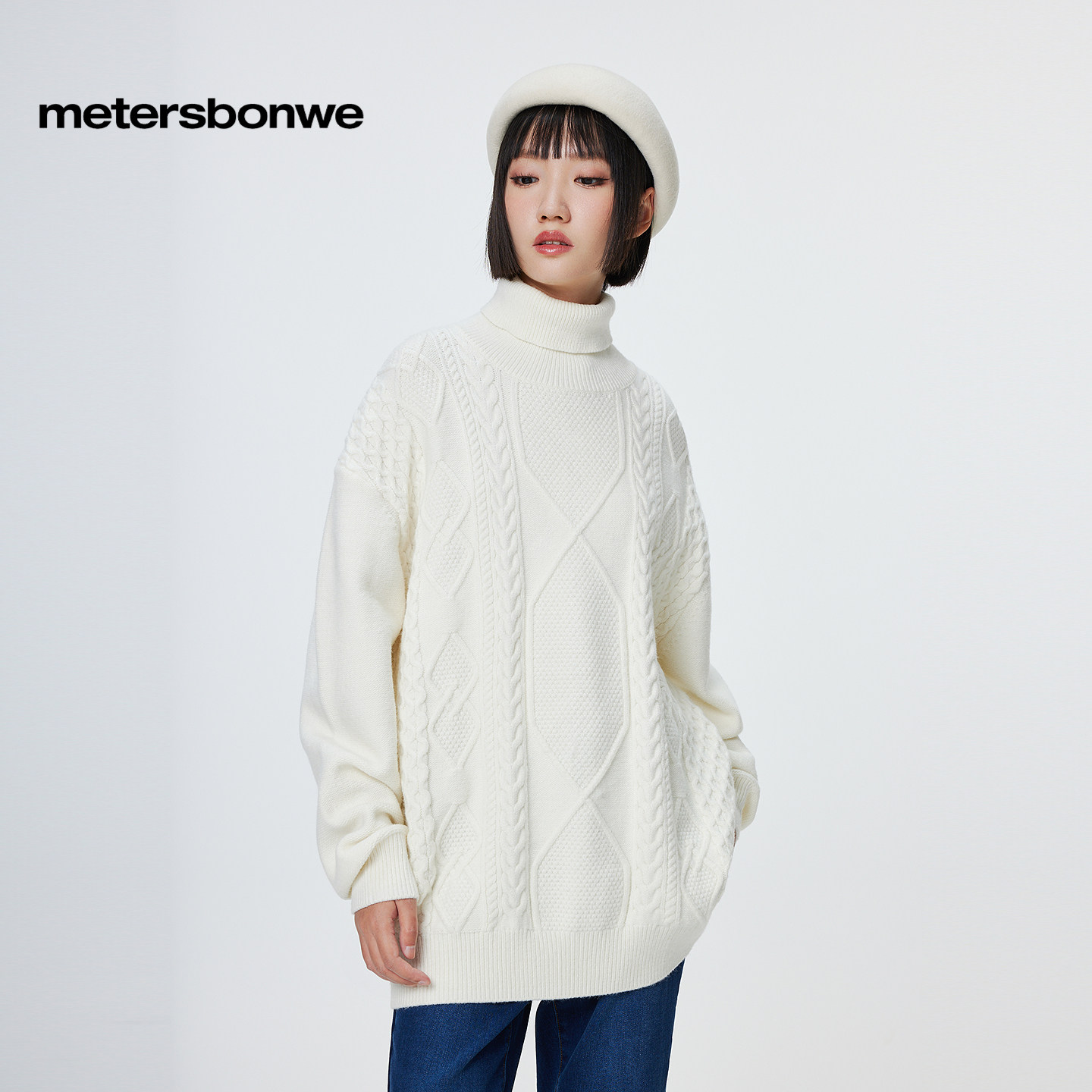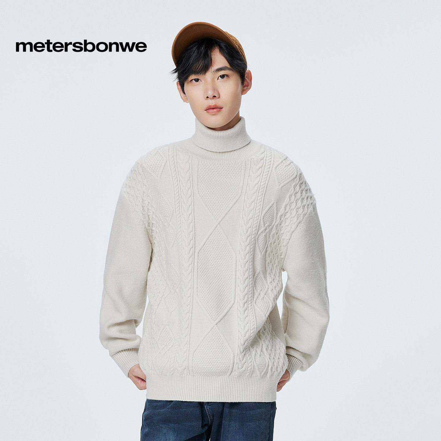 美特斯邦威上衣男纯色简约时尚潮流舒适高领绞花毛衫休闲舒适百搭