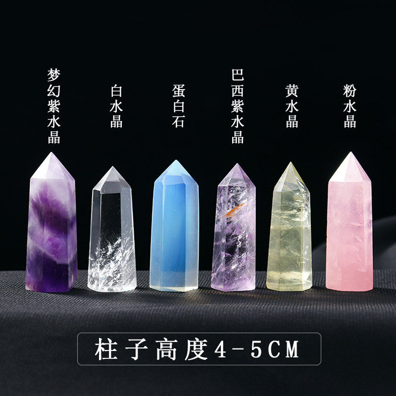天然白水晶柱原矿石强净化消磁石桌面摆件标本黑曜石紫水晶粉水晶
