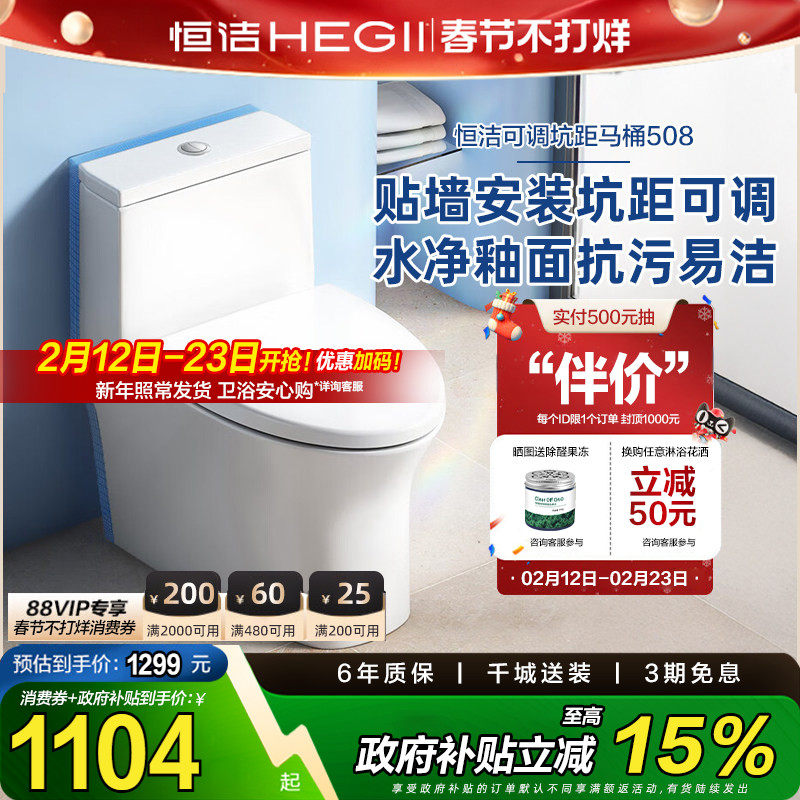 【政府补贴15%】恒洁马桶虹吸节水水箱冲水可调坑距坐便器508