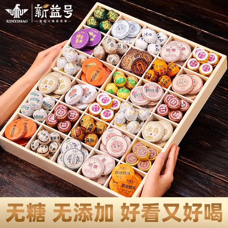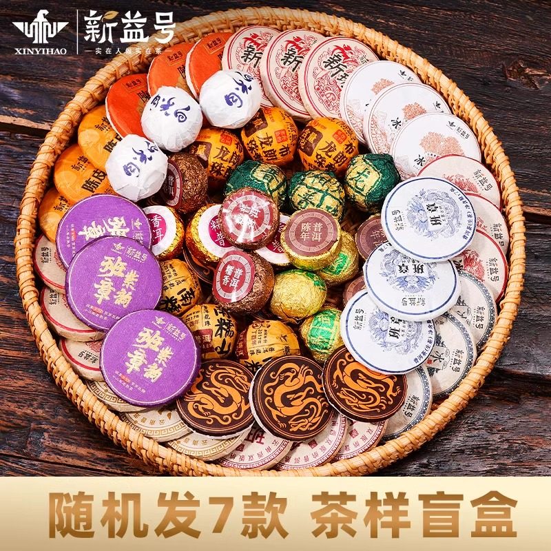24种普洱茶熟茶盲盒冰岛老班章易武生茶糯米香陈皮白茶自己喝茶叶