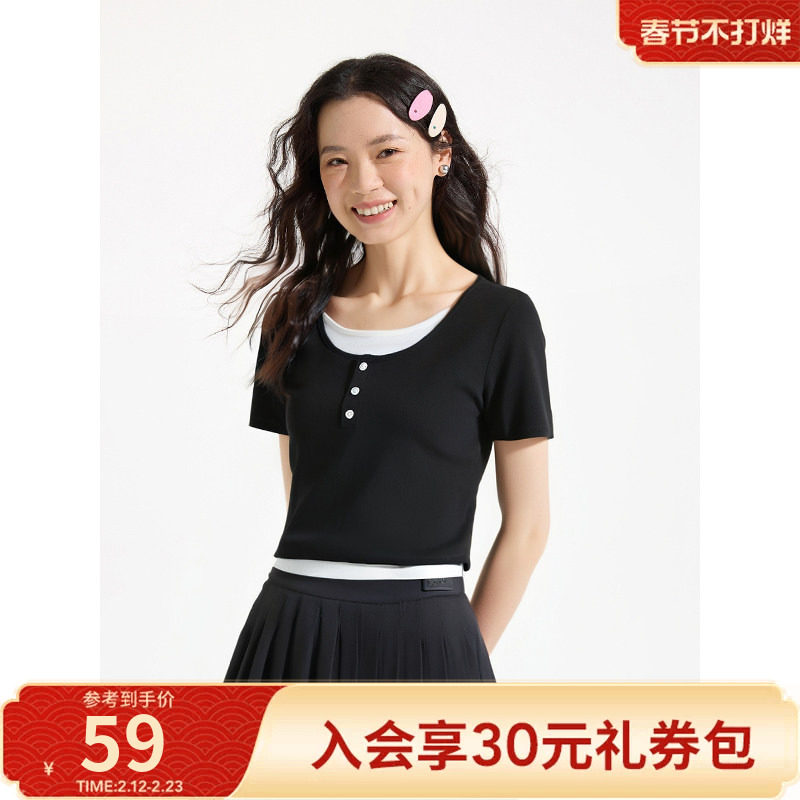 短T恤夏季热风2025年新款女士纽扣装饰假两件舒适简约休闲显瘦