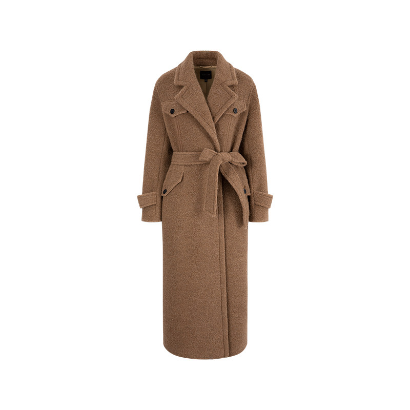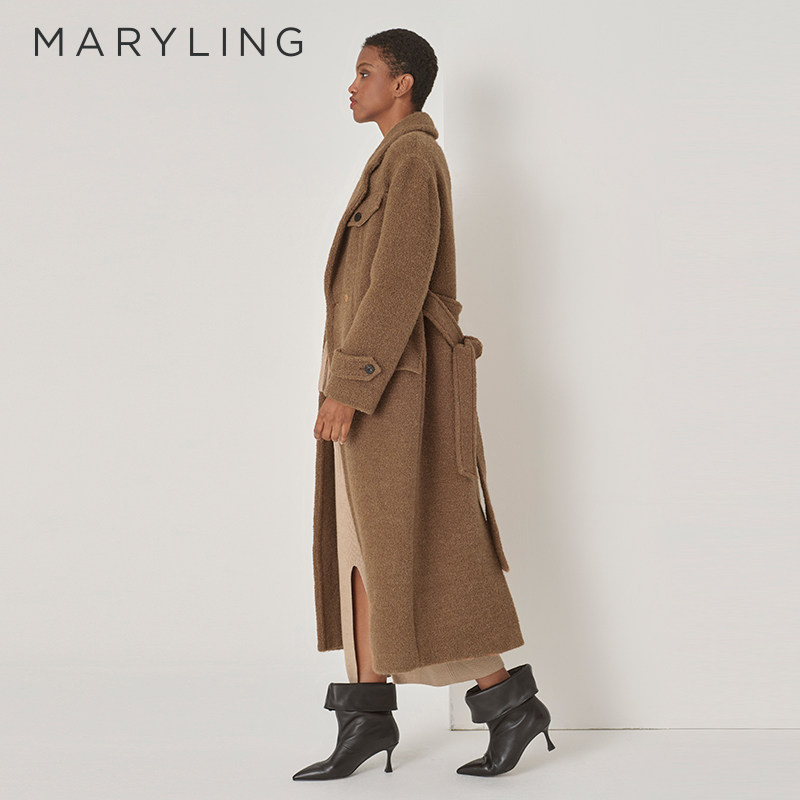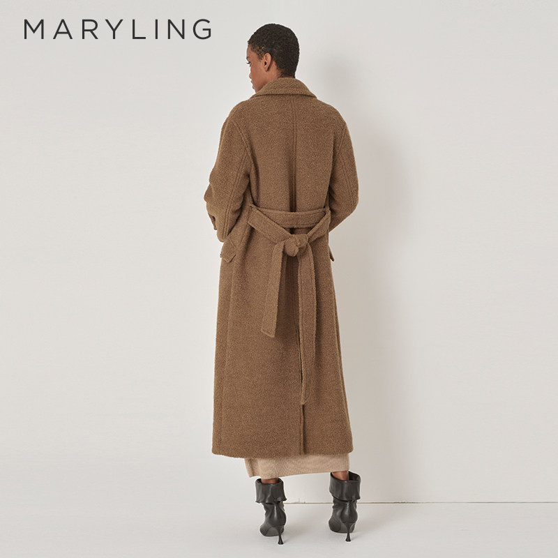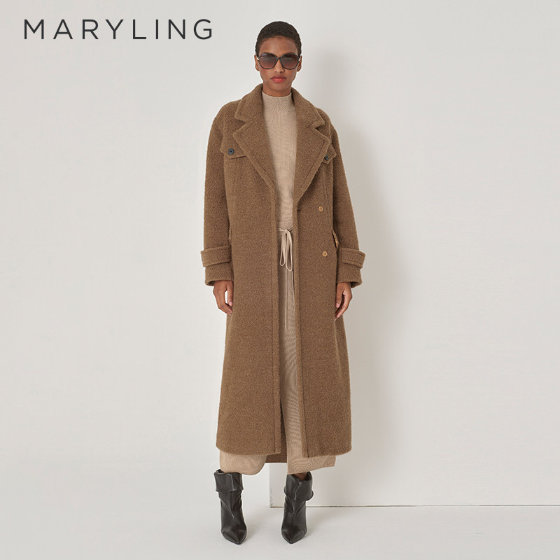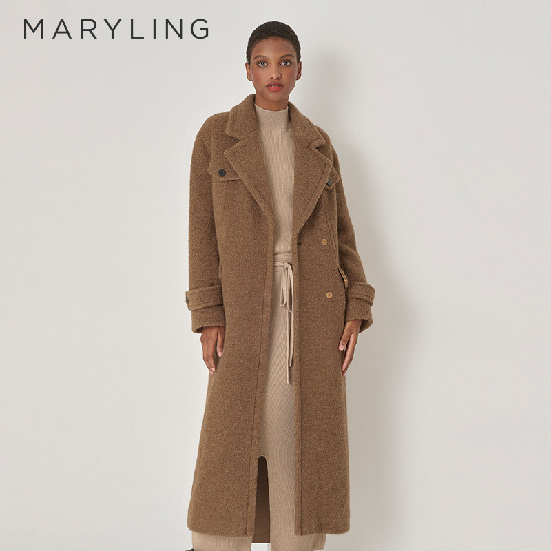 MARYLING玛俪琳秋冬新品驼色翻领钮扣毛呢大衣外套A1DHW93500