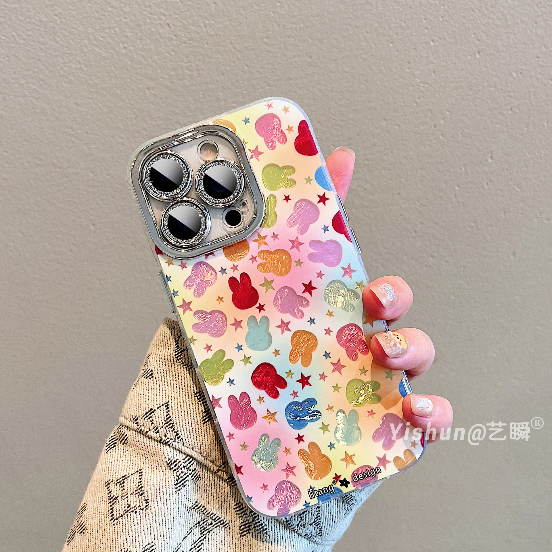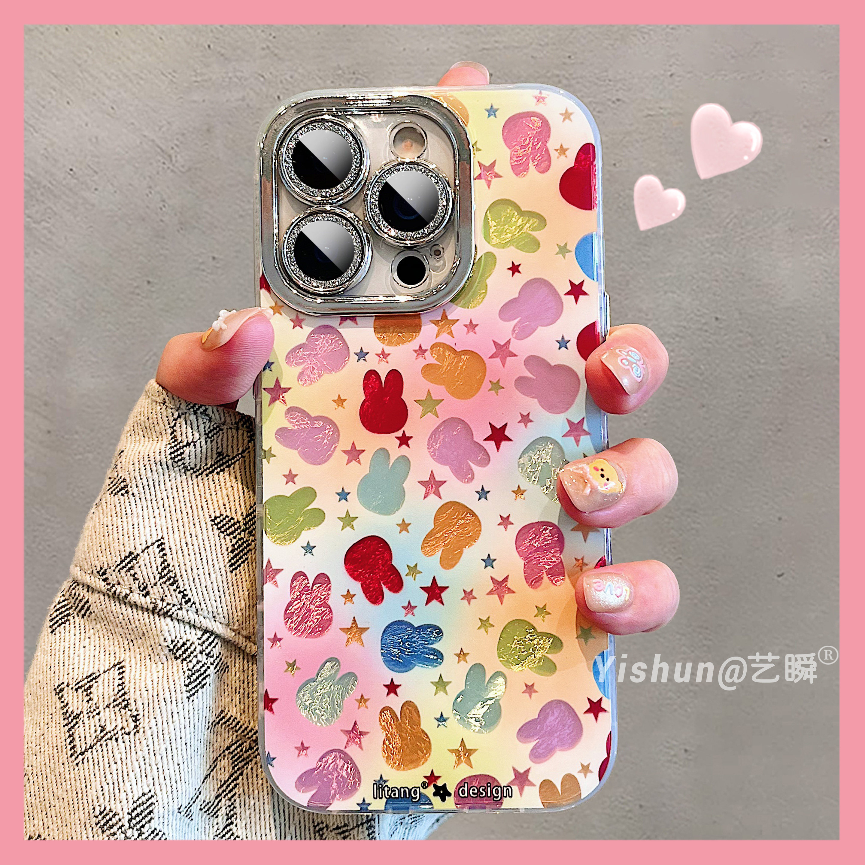 ins风多巴胺彩色渐变晕染星星兔兔适用iPhone17ProMax手机壳苹果16pro新款镜头15防摔全包14plus硅胶13保护套
