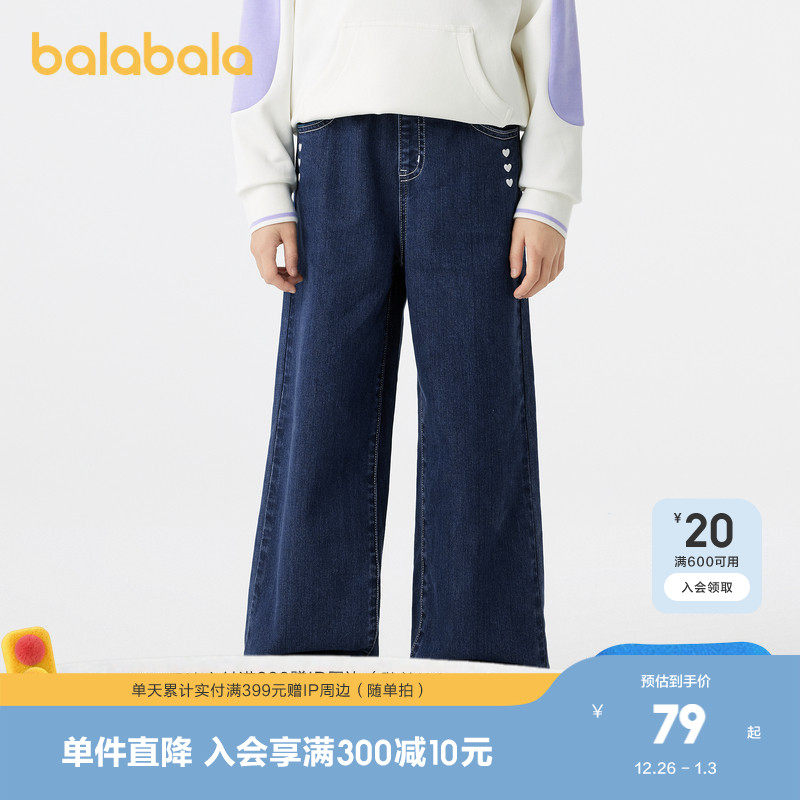 巴拉巴拉童装儿童直筒牛仔裤女童新款春秋百搭长裤子复古洋气甜美