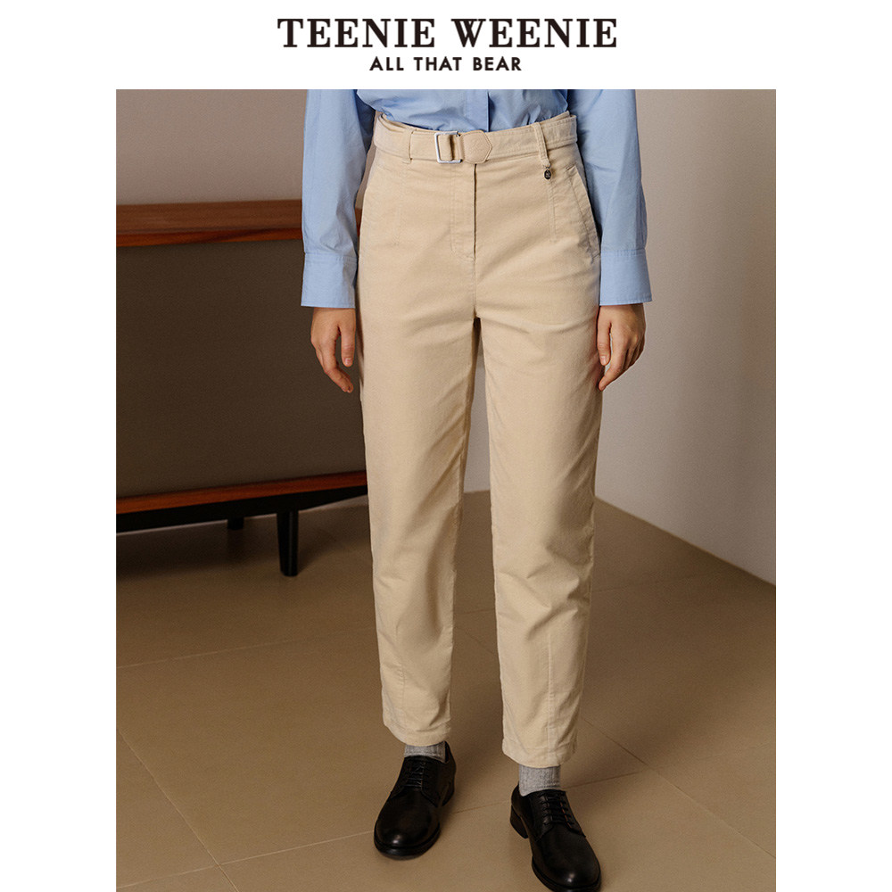 TeenieWeenie小熊奥莱秋季休闲腰带款锥形裤简约时尚长裤子女装