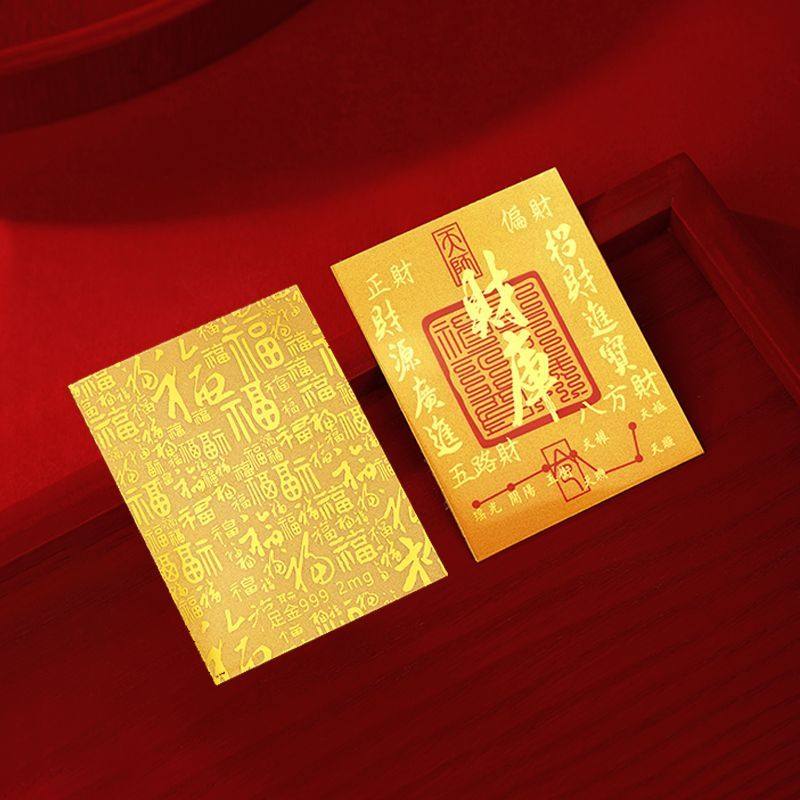 官方足金999公主请发财暴富招财黄金金片真金财神手机贴财库贴纸g