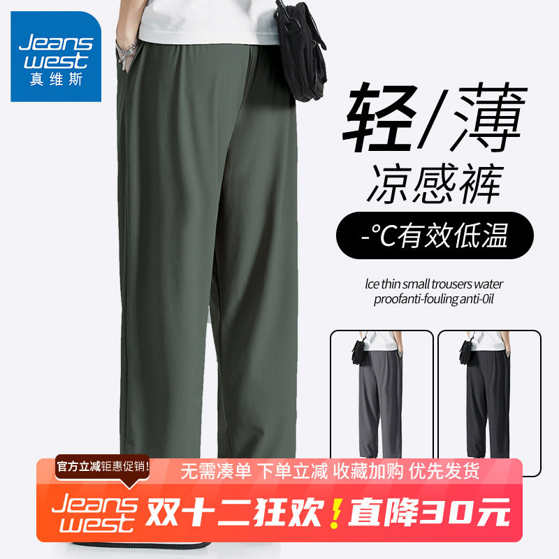 GV真维斯速干裤子男款夏季薄款冰丝男裤青少年宽松休闲直筒长裤B