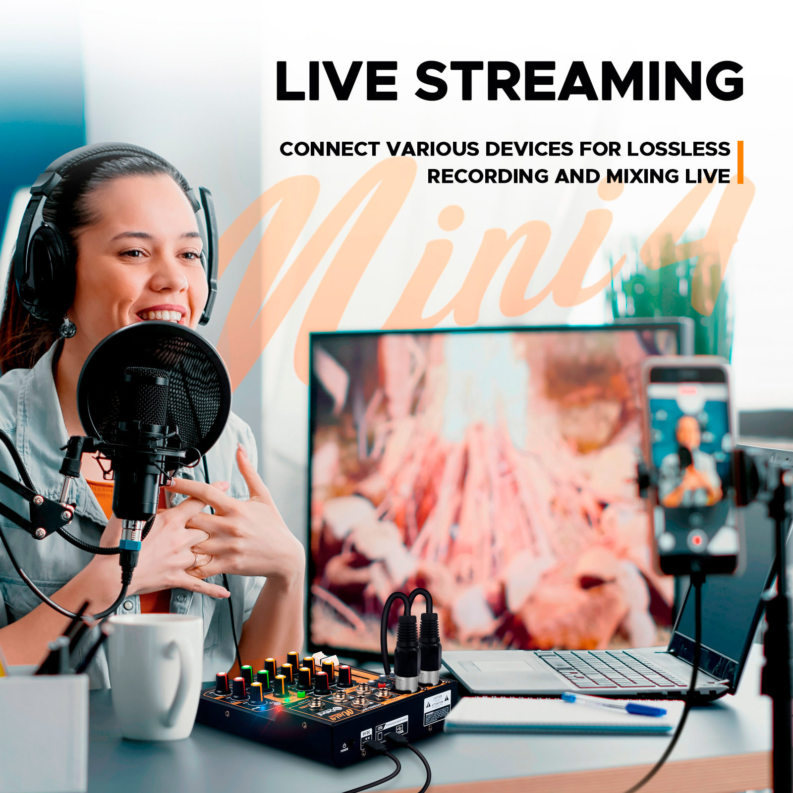 新款 迷你四路调音台带OTG效果蓝牙 USB电脑录音英文直播声卡跨境