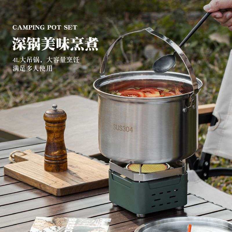 304不锈钢户外锅具野炊便携套锅野外露营餐具用品烧水壶套装炊具