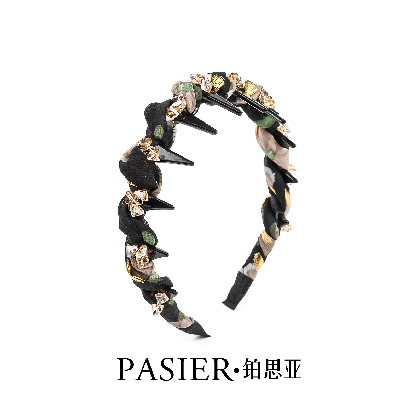 铂思亚古风褶皱水钻发箍女新款高颅顶带齿头箍发卡头饰发饰洋气