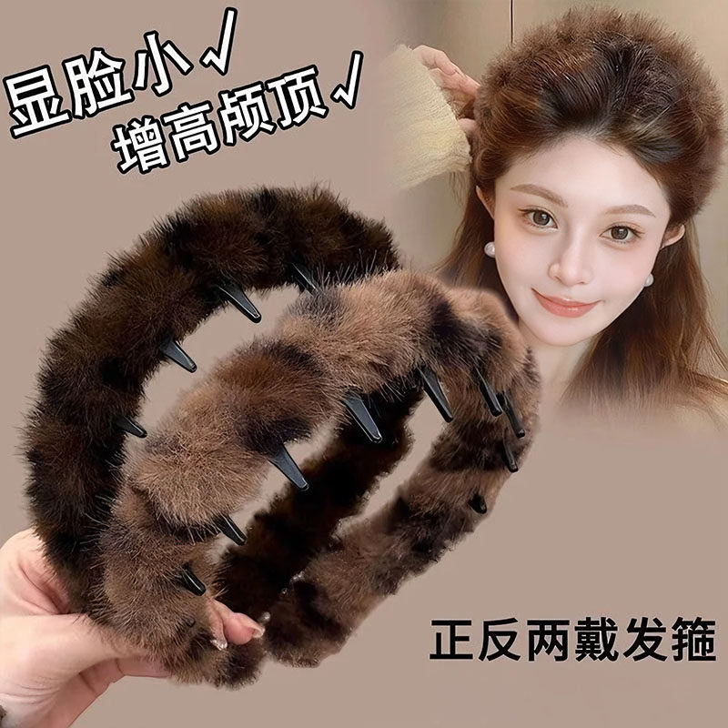 秋冬气质毛绒带齿发箍女2026新款高颅顶时尚头箍洗脸发卡碎发头饰