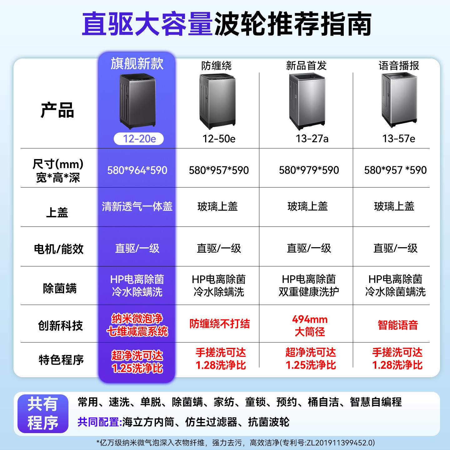 [国补15%]海尔洗衣机10/12公斤超大容量家用全自动波轮变频旗舰店