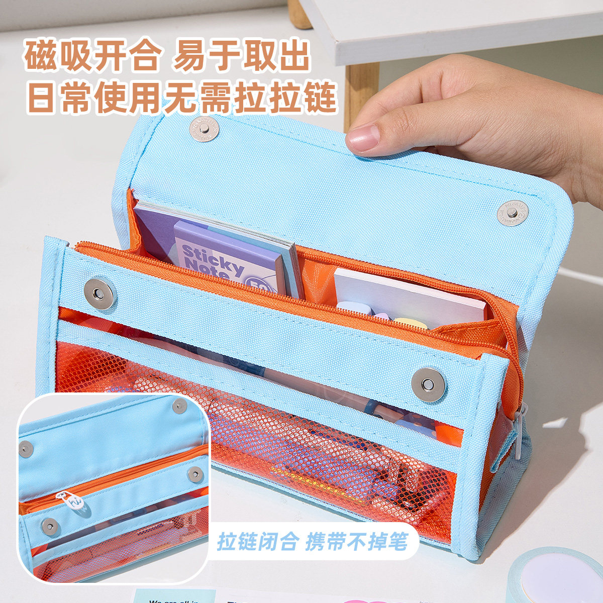 三年二班x嗨士袋 便携磁吸三角笔袋大开口2025新款简约高颜值ins风文具袋初中小学生文具盒透明铅笔盒男女