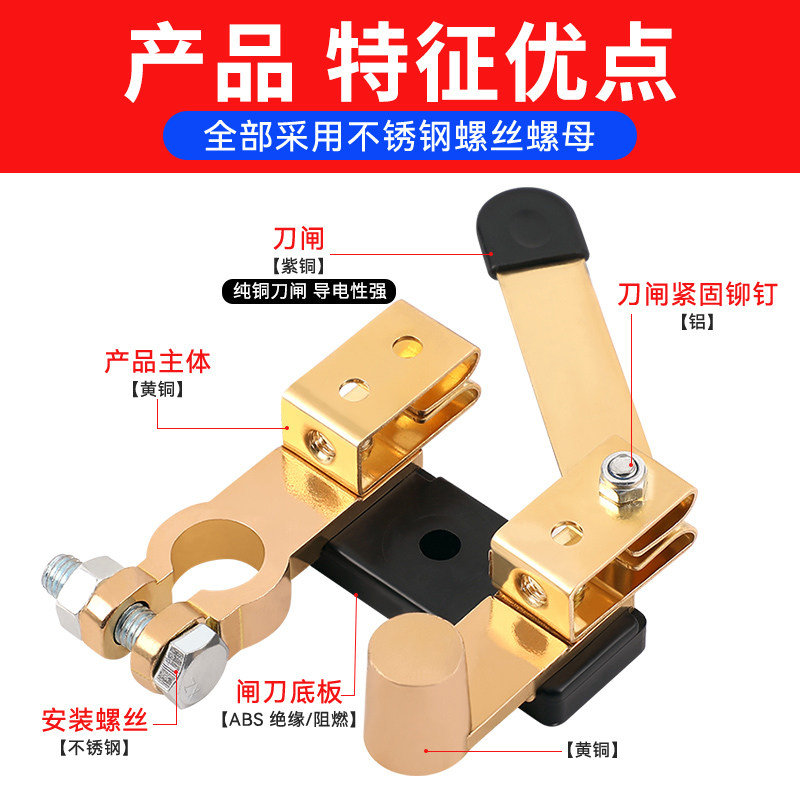 汽车电瓶断电开关纯铜正负极通用电闸闸刀防漏电改装黄铜总闸车子