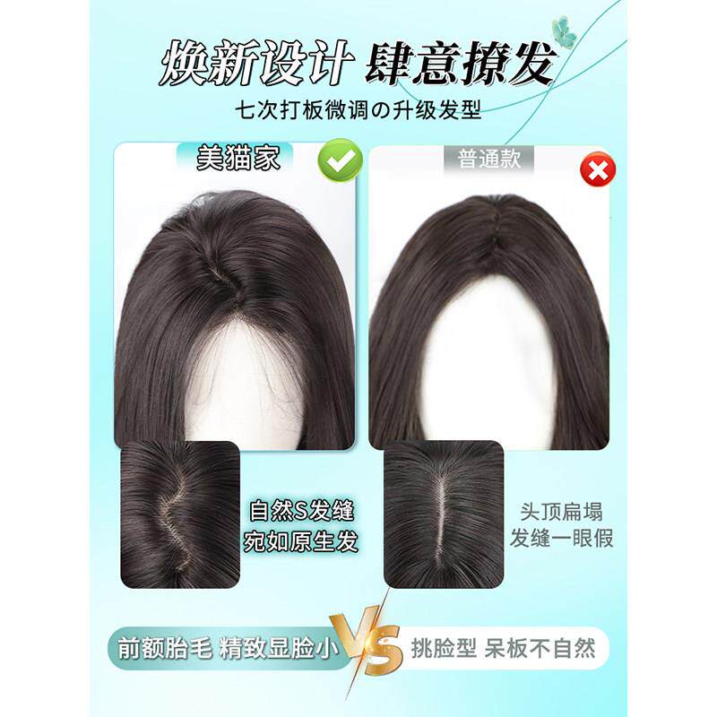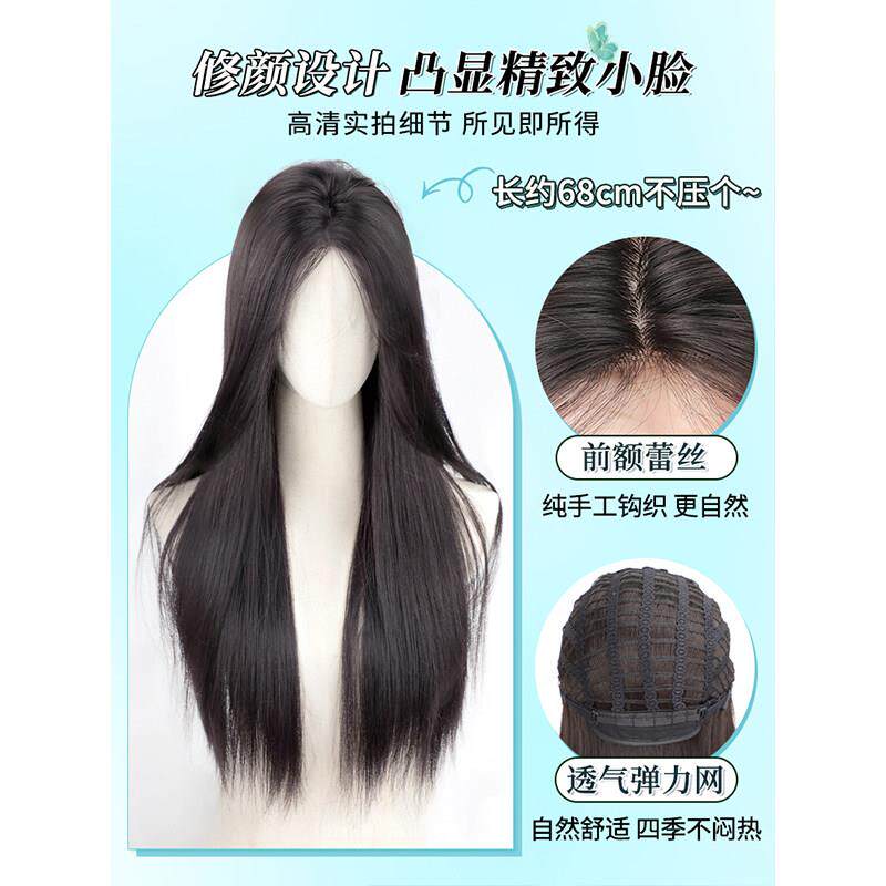 假发全头套前额蕾丝无痕蓬松黑长直轻薄头顶真发中分白月光假发套