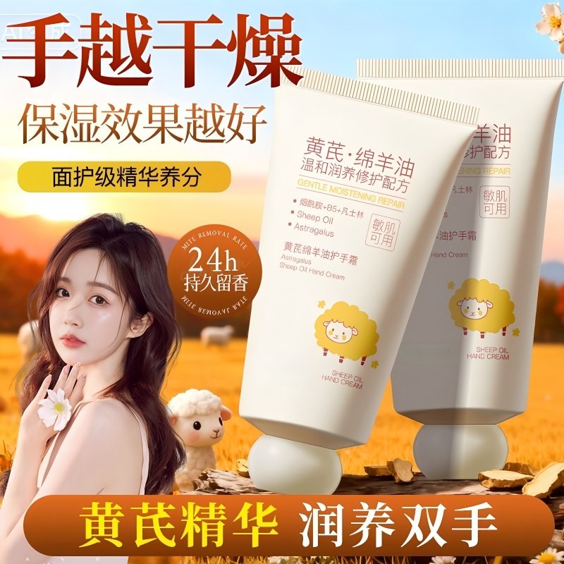 黄芪绵羊油护手霜滋润保湿补水防干裂粗糙美嫩白淡手纹男女士学生