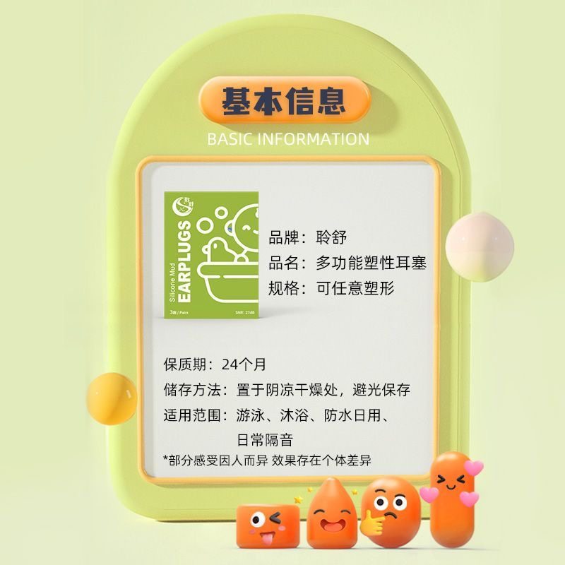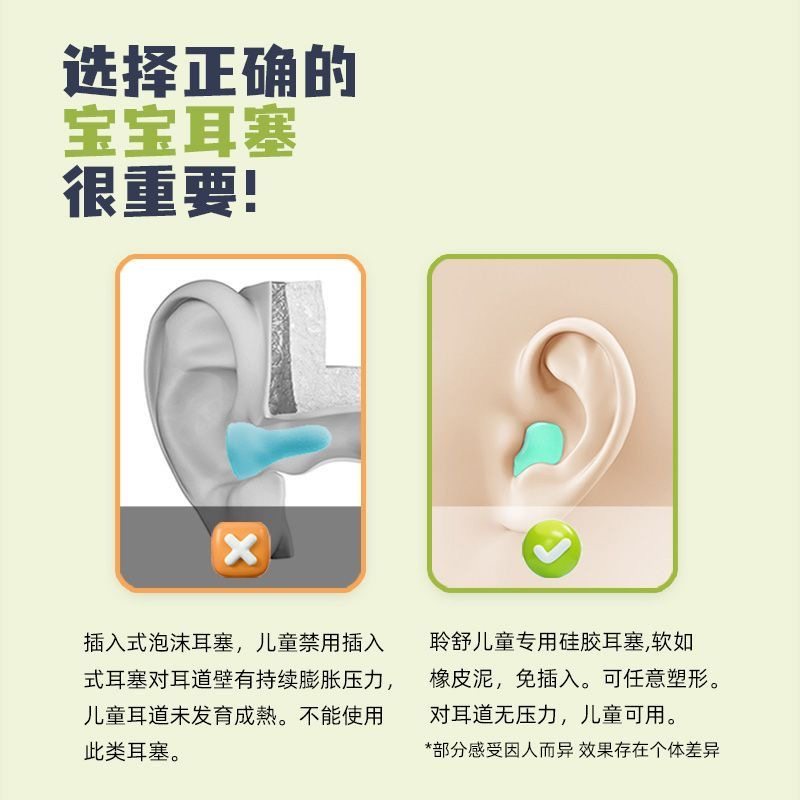 聆舒儿童防水隔音耳塞宝宝孩子游泳洗澡耳朵防进水旅游睡眠打呼