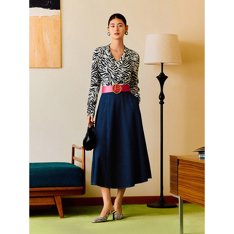 【1996系列】YINER音儿2025春季新款假两件斑马纹真丝桑蚕丝衬衫