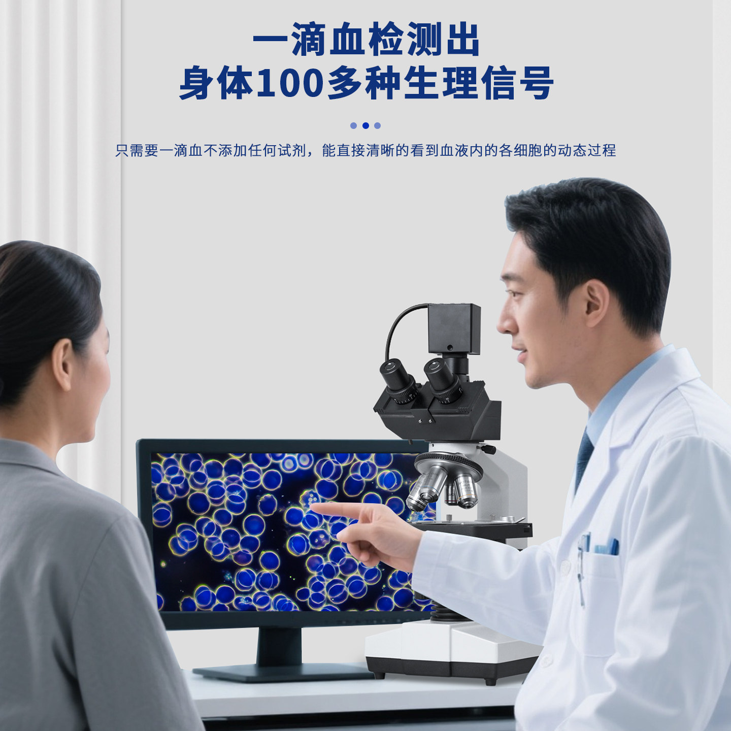 创迹专业黑背景一滴血检测仪器暗场血液细胞分析仪显微镜实验室高清微生物血脂血常规红细胞带挂图养生大健康