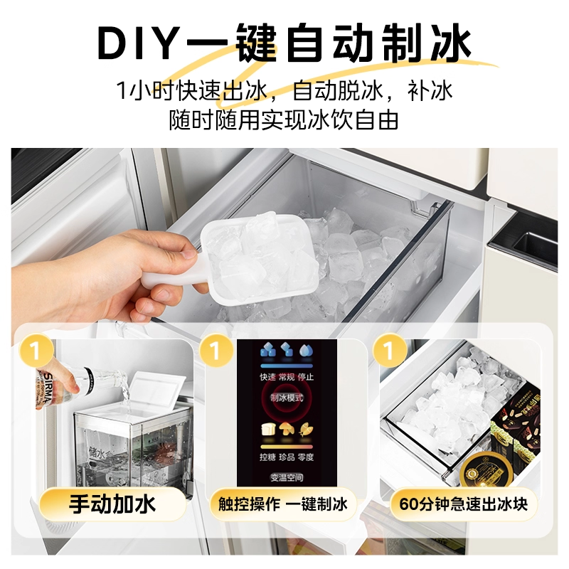 美的华凌神机547双系统超薄零嵌十字家用四开门风冷制冰一级冰箱