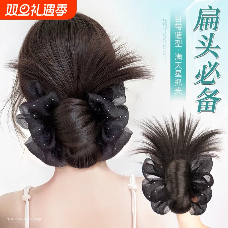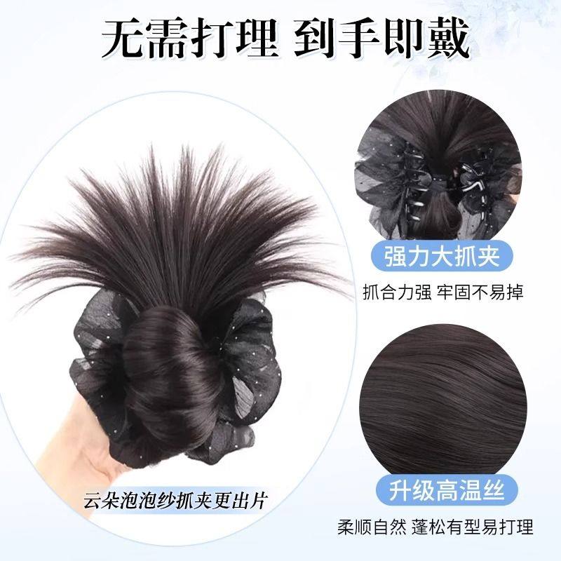 低扎丸子头假发鸡毛头抓夹盘发发包慵懒感造型头饰自然蓬松后脑勺