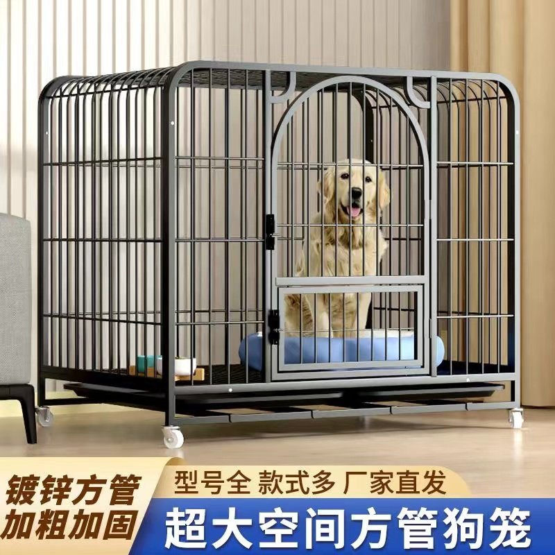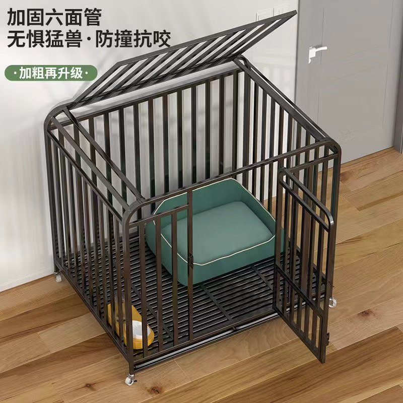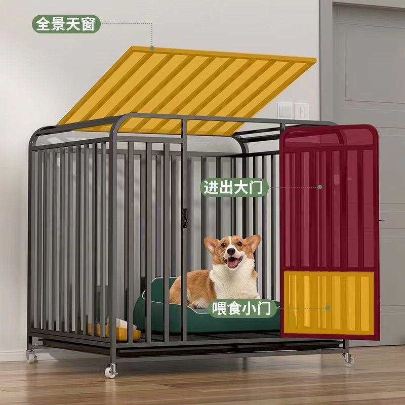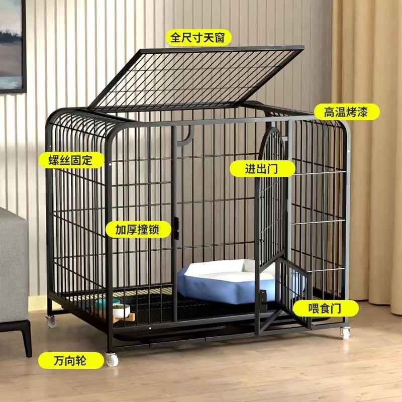 全方管狗笼中大型犬室内带厕所天窗喂食门可移动万向轮小中大型狗