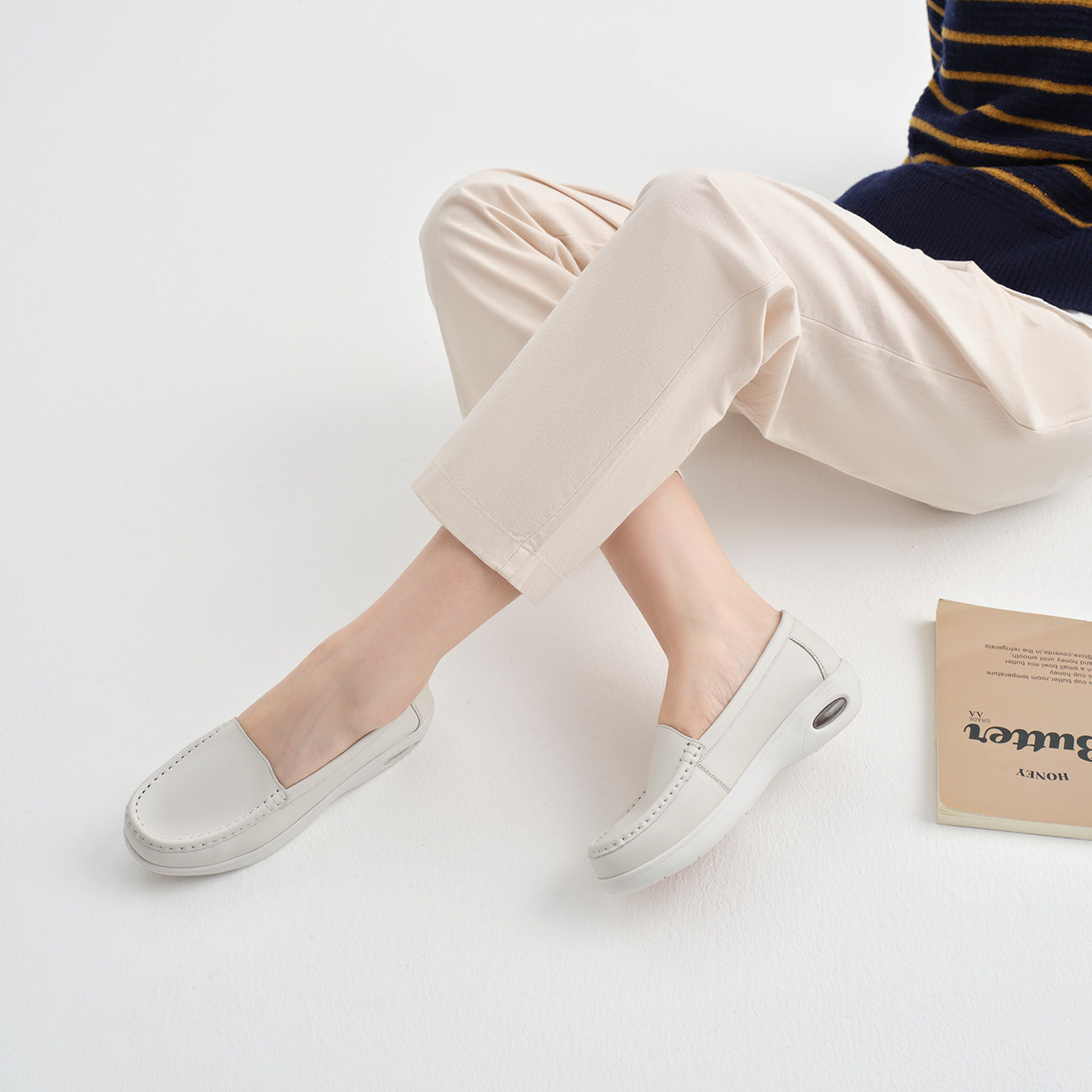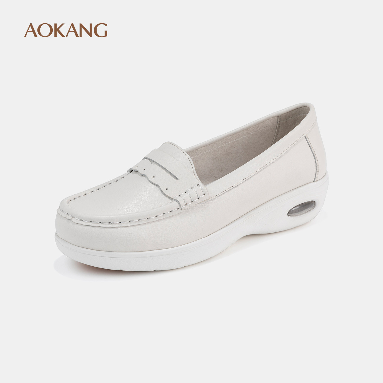 奥康女鞋 春秋真皮软底大头护士鞋透气百搭柔软不累脚包子鞋