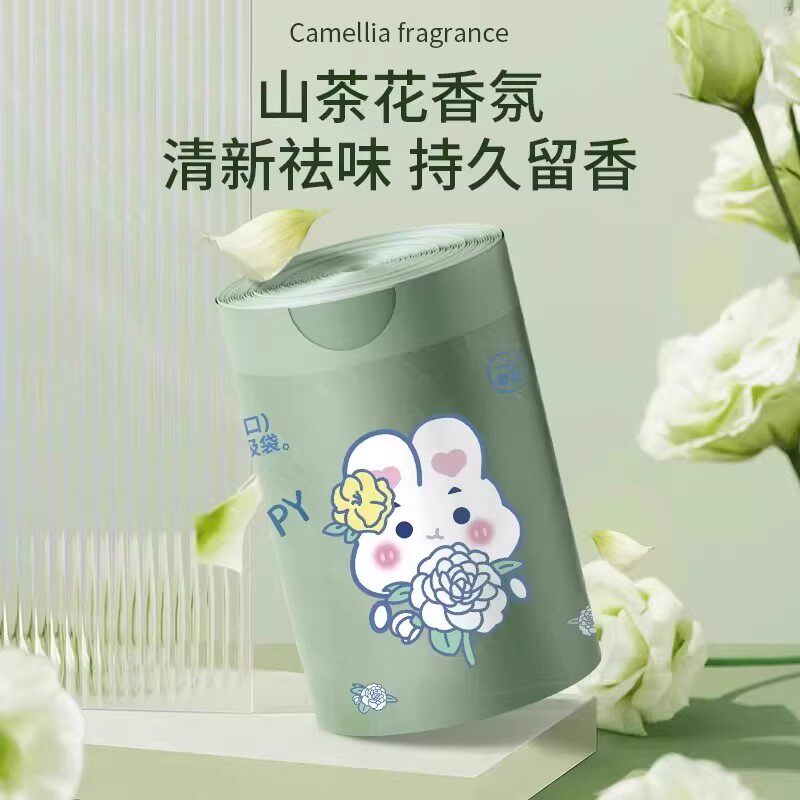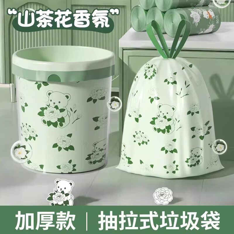 山茶花香味垃圾袋家用加厚款手提式抽绳点断塑料袋厨房宿舍实惠装
