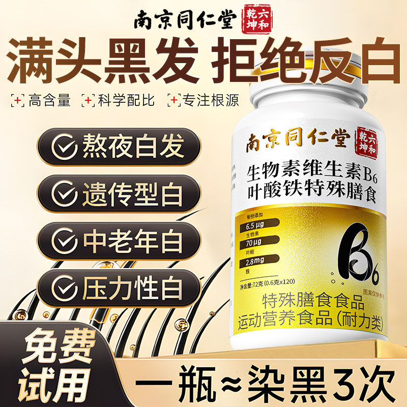 生物素维生素h黑发片b6白头发根转黑叶酸片b族官方旗舰店正品健康