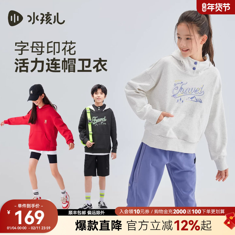 【小弹簧亲子款】水孩儿女童卫衣春秋装新品运动衫连帽上衣大码