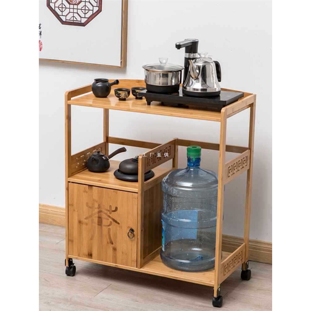 移动茶水架置物架饮水桶架子楠竹实木简约茶水柜茶台边几烧水壶架